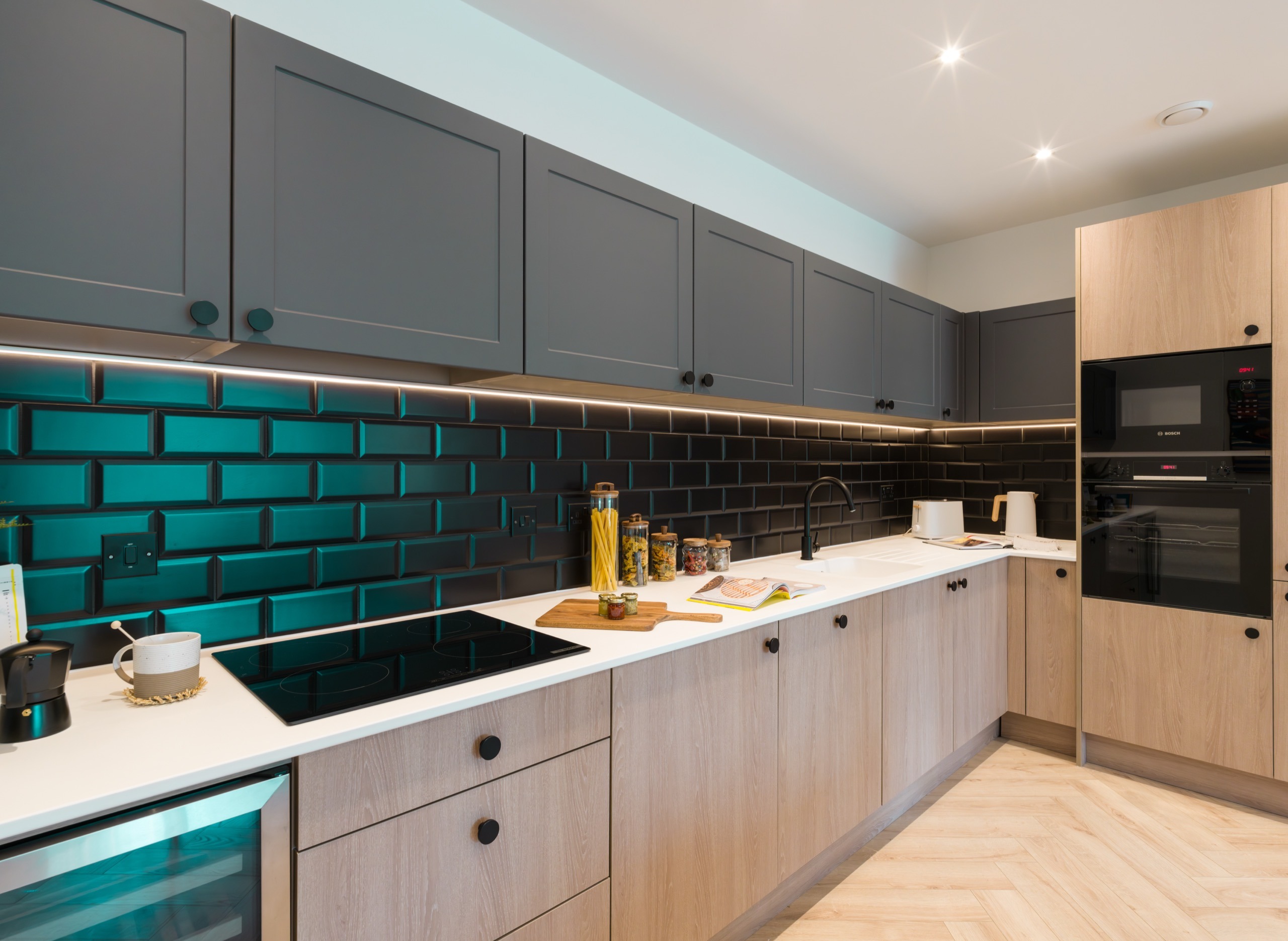 - Integrated Bosch induction hob, oven, microwave and extractor fan