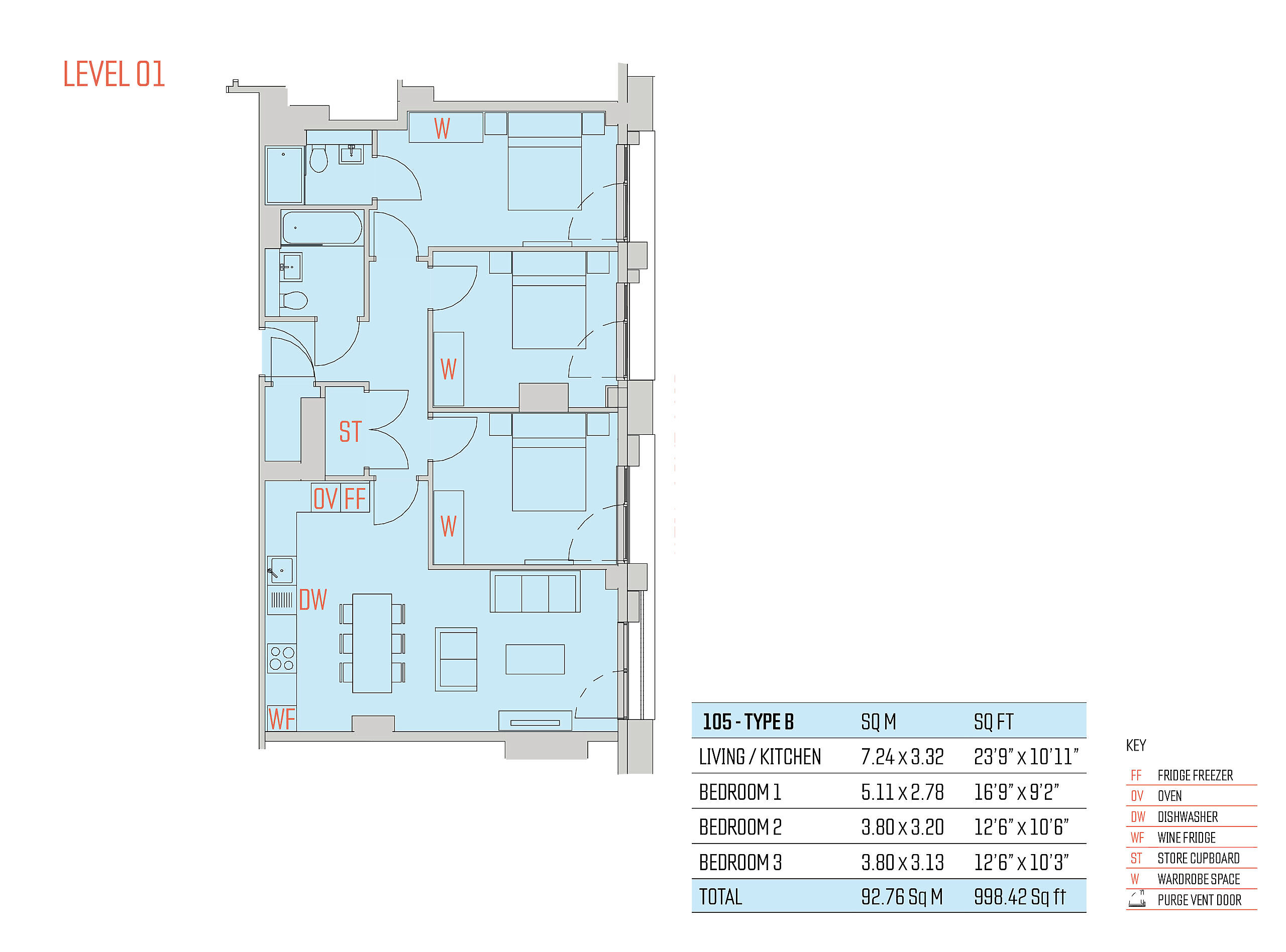 Show apartment photography is of a 3-Bedroom - Type A apartment and is intended for illustrative purposes only. Apartments do not come dressed as standard.
