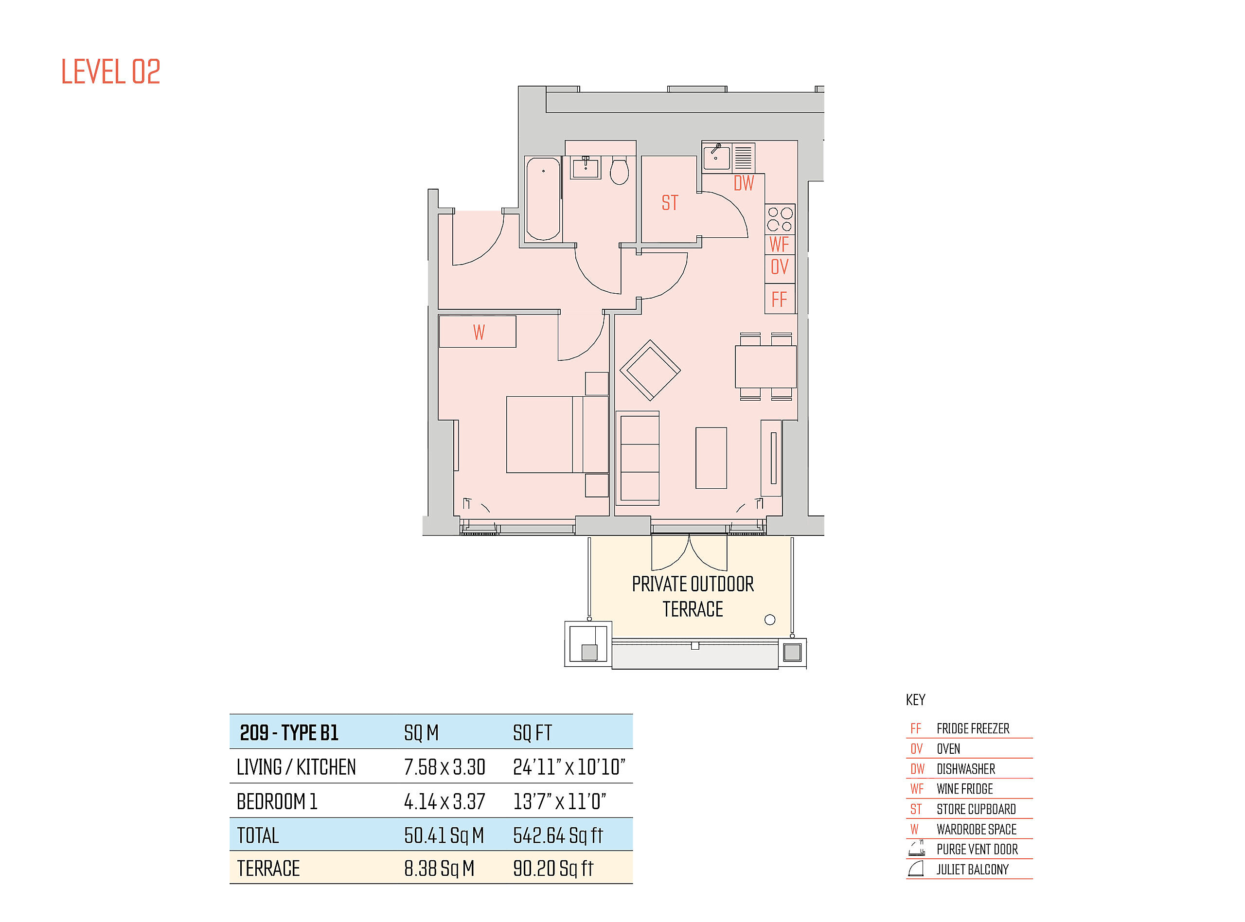Show apartment photography is of a 1-Bedroom - Type B2 apartment and is intended for illustrative purposes only. Apartments do not come dressed as standard.