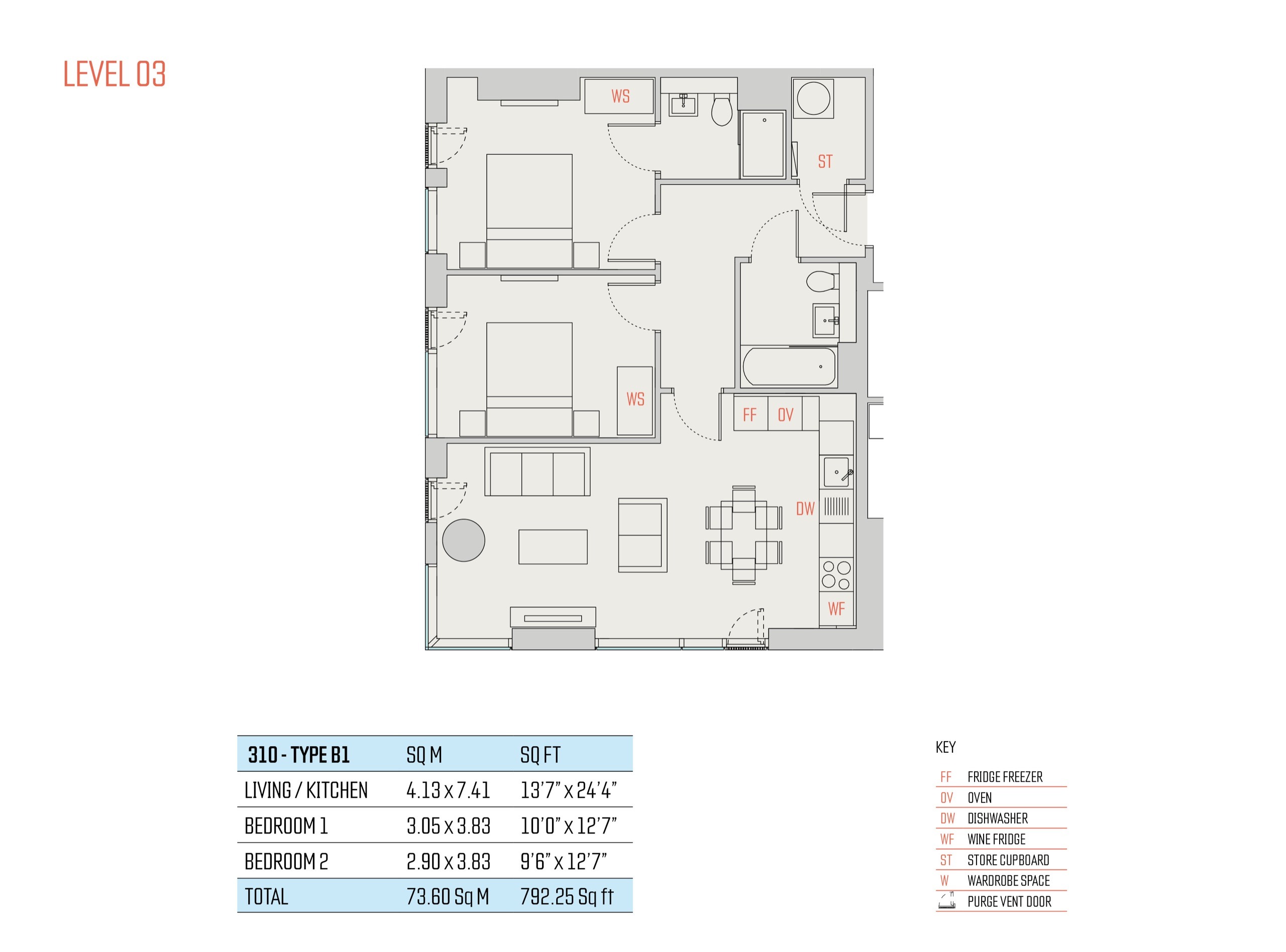 *300mm wine cooler (all 1 bedroom apartments), 600mm wine cooler (2 & 3 bedroom apartments).