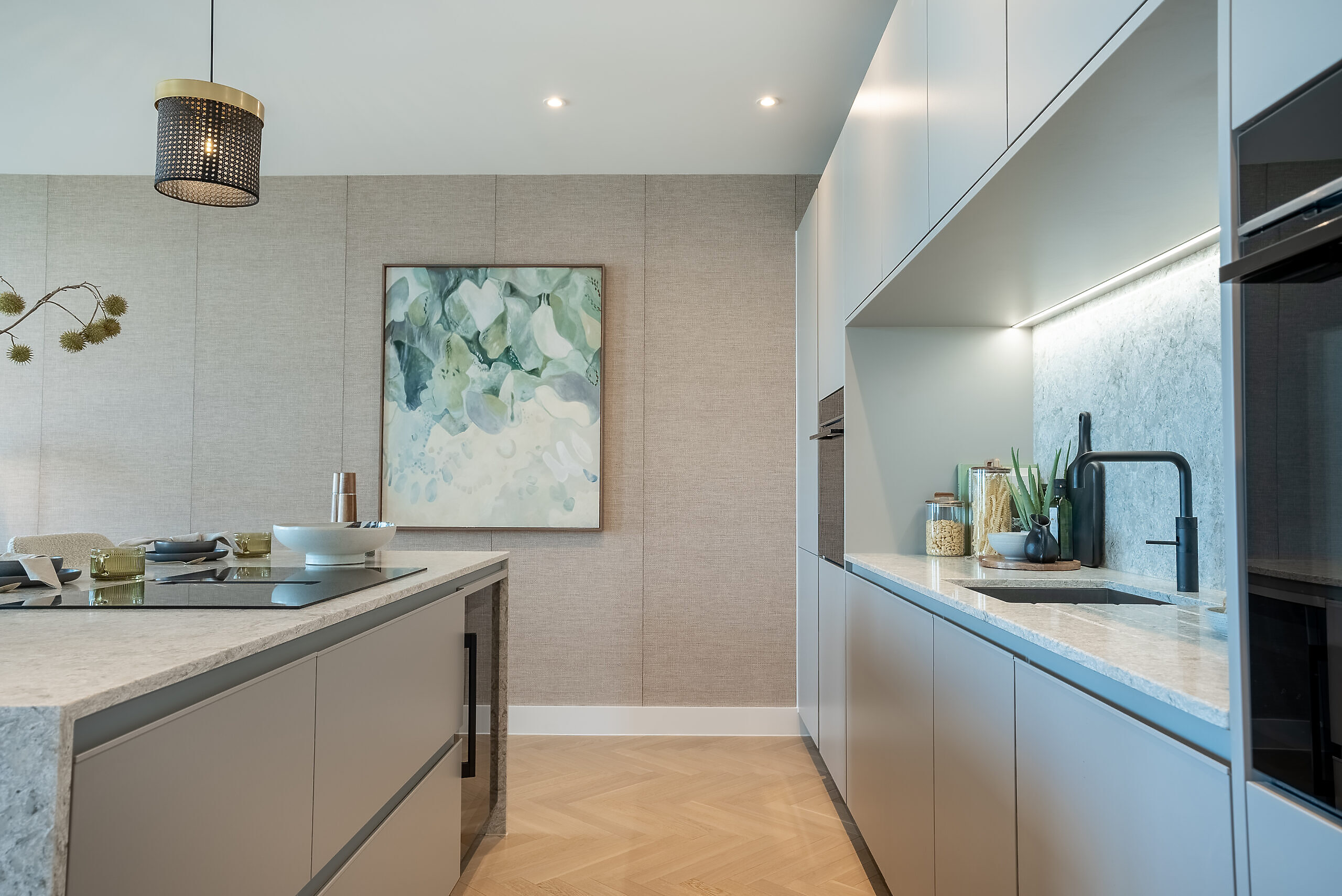 - Bespoke SieMatic handleless kitchen cabinets in Pebble Grey