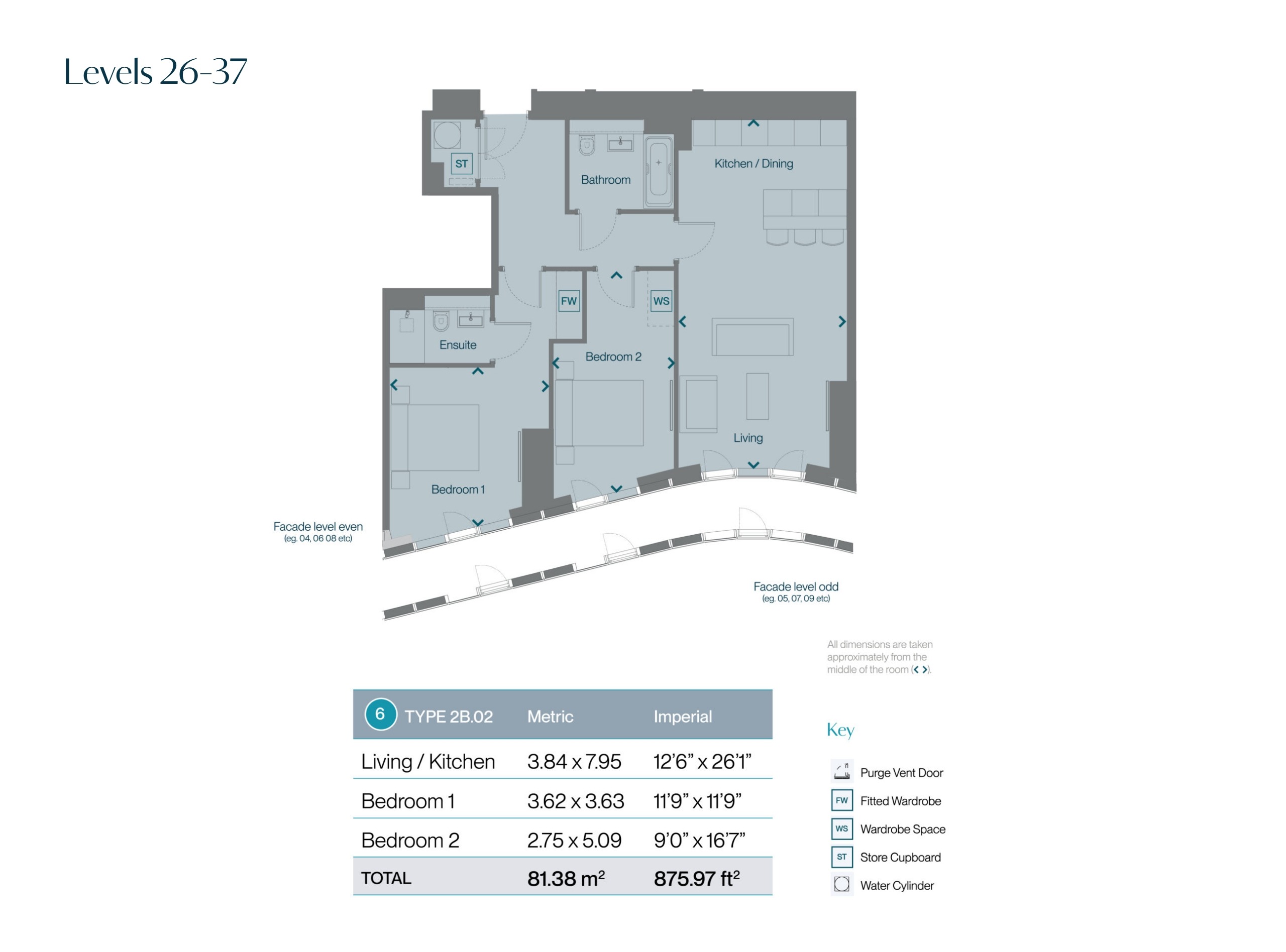 Show apartment photography is of a 2-Bedroom - Type 2B.02 apartment and is intended for illustrative purposes only. Apartments do not come dressed as standard.