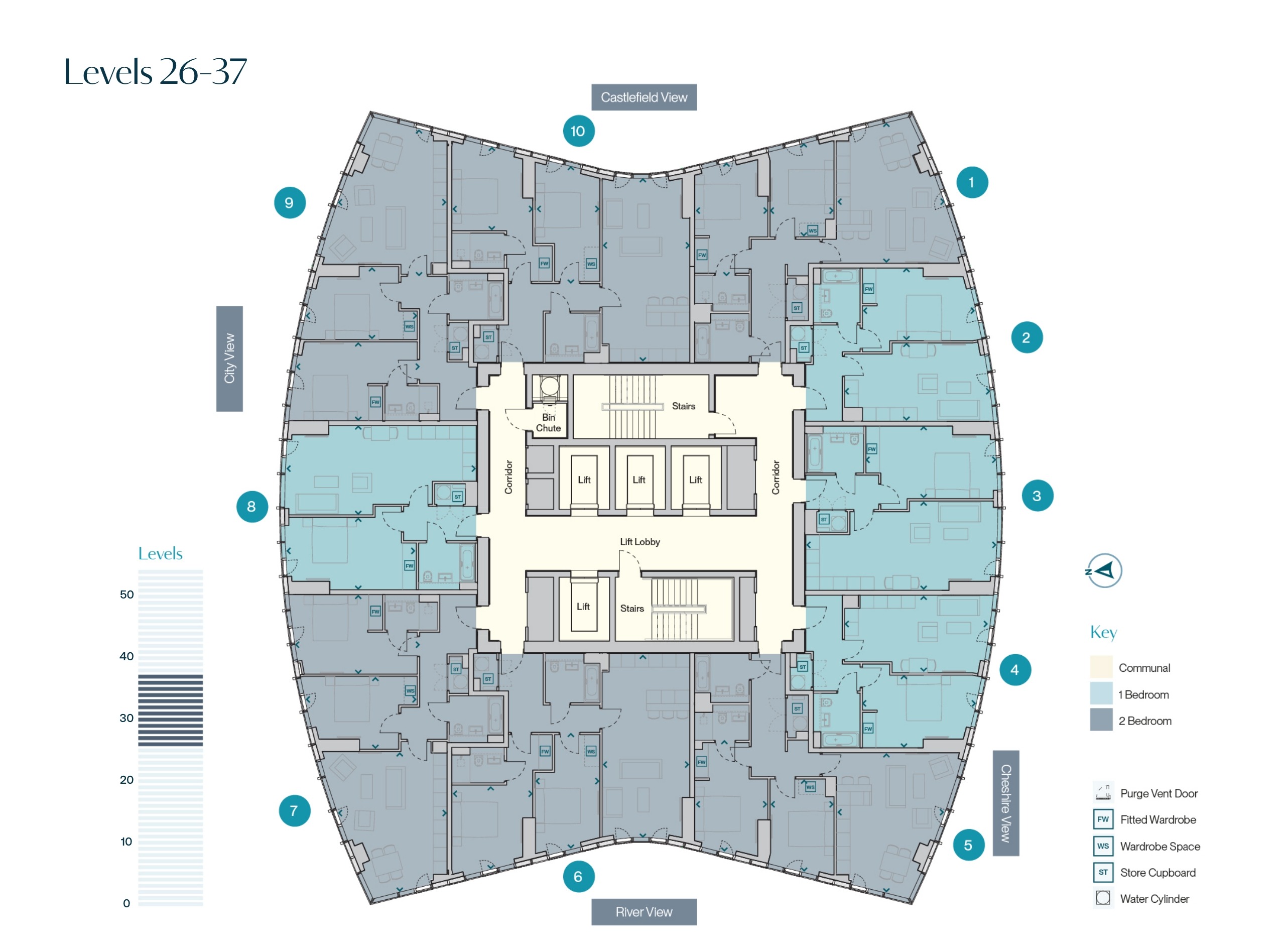 - 4 lifts provide access from ground up to and including level 53, whilst a separate lift operates from ground level to the basement where the car park‡ (including EV charging points‡‡) cycle store, and Urban Tails dog spa are located.